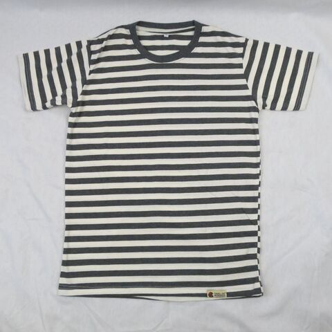 グレーのボーダー柄 Tシャツ。 ベースの色は白ではなく、生成り色で、ボーダーカラーは灰色。 着心地がいいコットン素材で、生地もしっかりしています。 【サイズ】 Mサイズ:着丈67cm 身幅47cm 肩幅41cm 袖丈19cm Lサイズ:着丈71cm 身幅52cm 肩幅45cm 袖丈20.5cm...